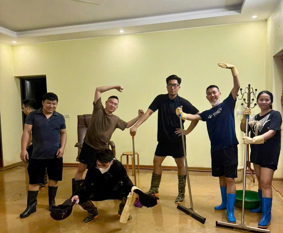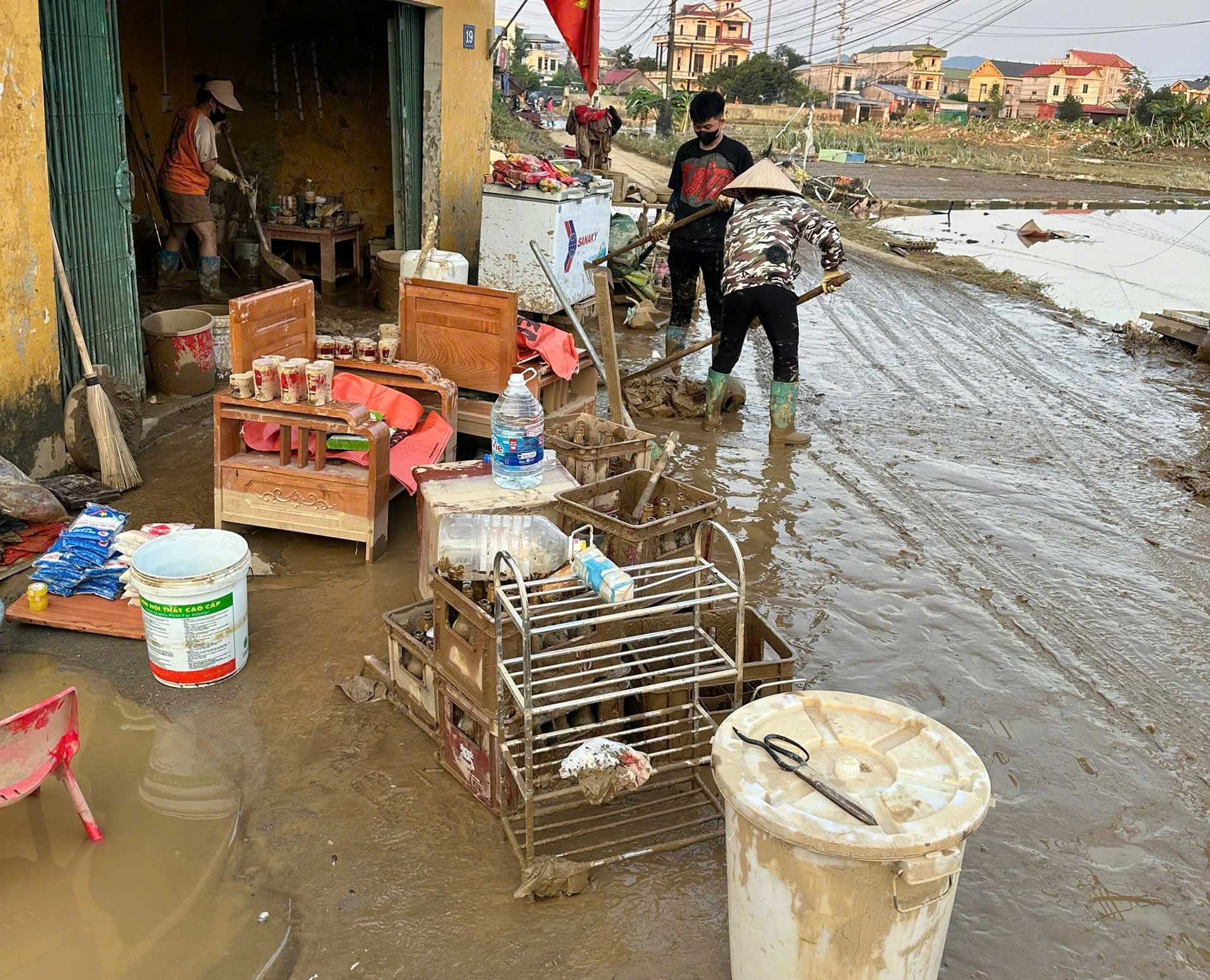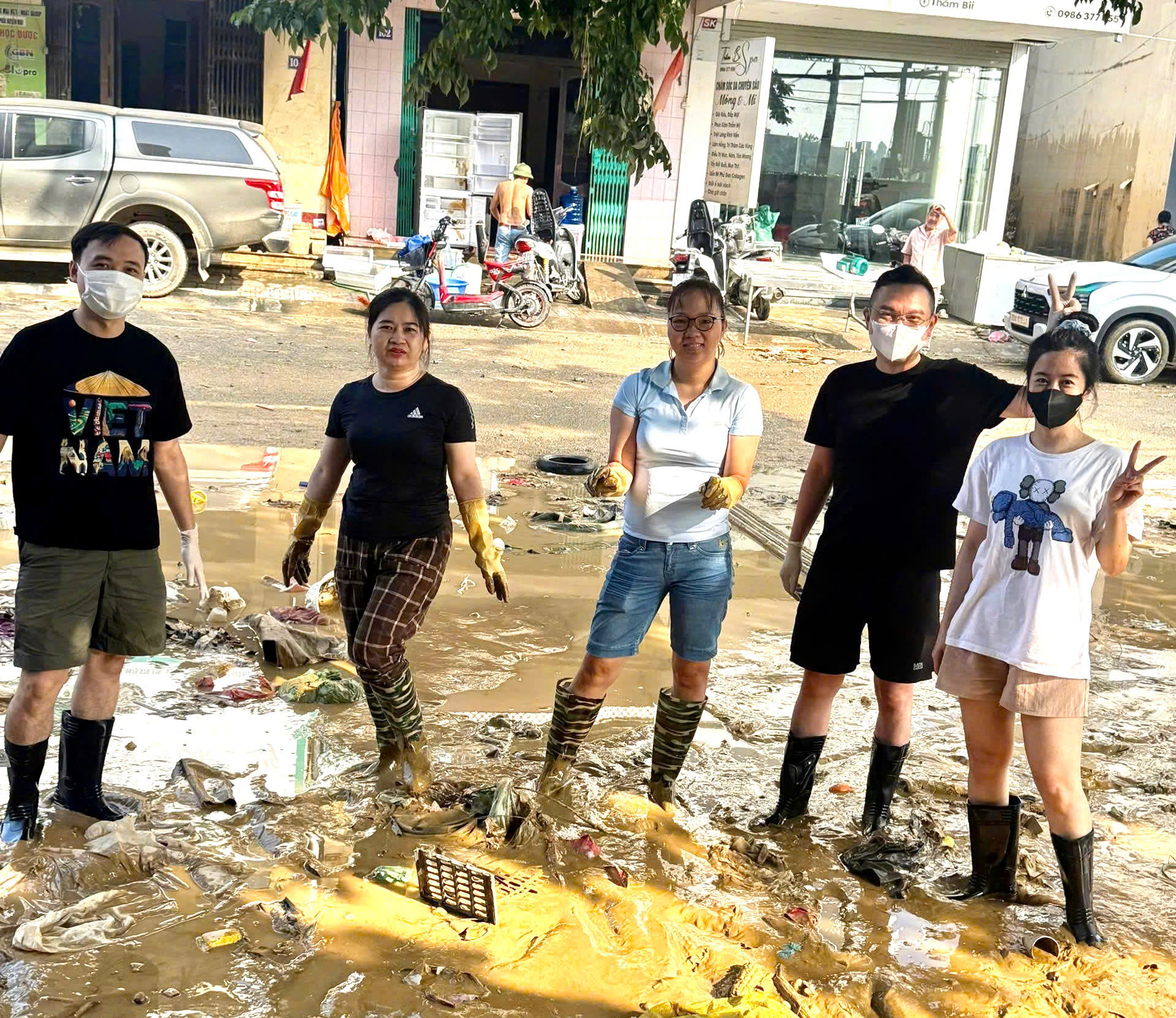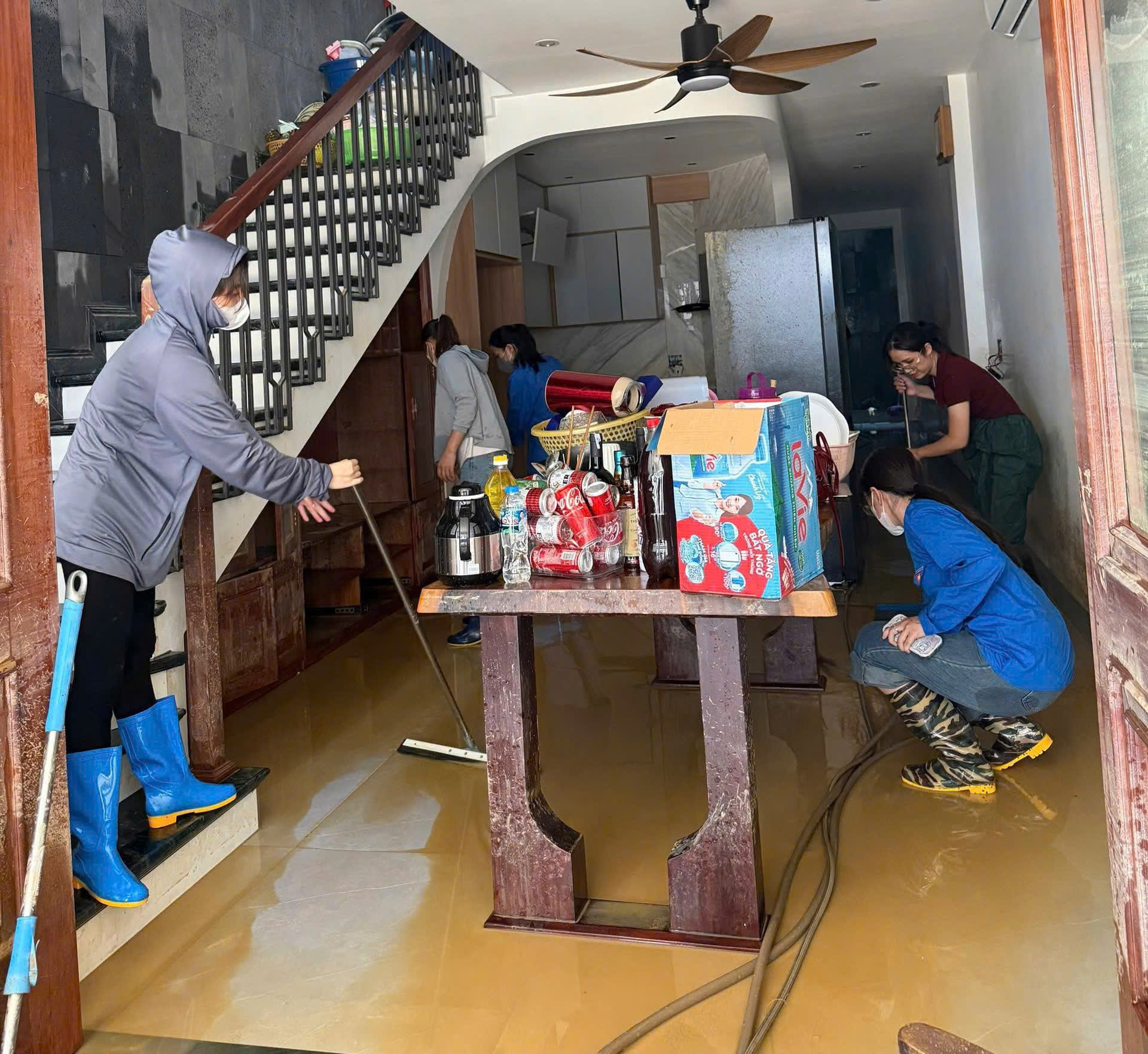 Cán bộ, nhân viên, người lao động Trung tâm Đào tạo từ xa - Đại học Thái Nguyên hỗ trợ các gia đình dọn dẹp nhà cửa sau lũ